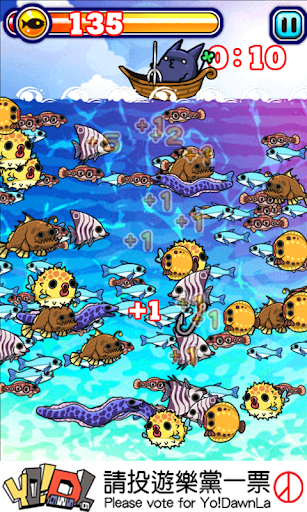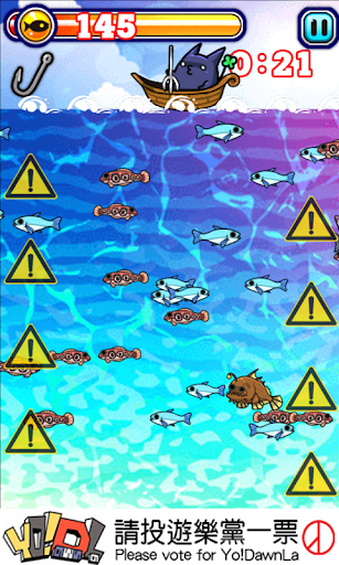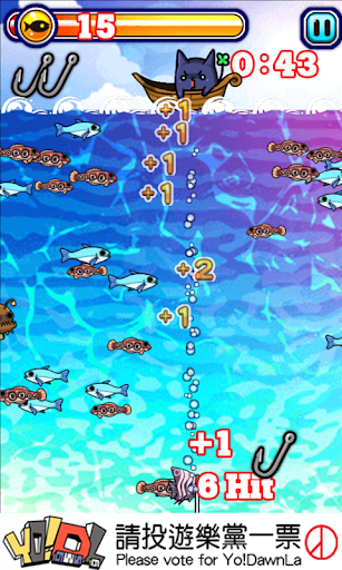 要注意的是魚叉的數量有限,如果串到6條魚就會增加一支魚叉。如何一口氣命中大量的魚是獲得高分的關鍵喔。