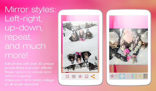 適用於美容鏡效果和過濾器,從眾多的網格模板中選擇,而章安在所有的社交網絡分享你的可愛的照片!使用這個可愛的圖片編輯器中的照片拼貼,並張貼在你photowall獲得數百喜歡的。使用這張照片大小調整來調整,而不照片裁剪圖像,並分享instacollage上的Instagram獲得新的追隨者!有了這面鏡子的照片編輯器,你可以在Twitter上分享您的照片拼貼,或作出一個驚人的鏡面背景壁紙為您的智能手機或平板電腦!