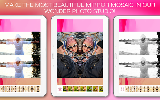 帶鏡照片拼貼,最好的免費照片編輯軟件,你會在瞬間內創建一個奇蹟鏡子拼貼壁紙!您可以選擇乘坐自拍或從手機圖庫中選擇一個圖像,並開始編輯照片與此鏡照片編輯器!有了這個奇蹟photoeditor可以讓你添加效果,圖片和創造美麗instaphoto拼貼!