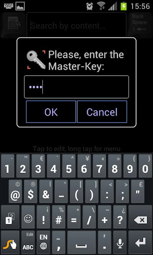 如果您忘记了主密码并不管怎样不想继续使用本软件,请删除已存在的"/mnt/sdcard/config.bin"文件。下次程序启动时,您便可创建新的密码和新的空数据库。