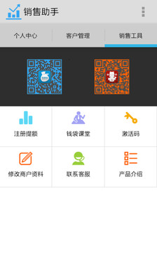 销售助手,是钱袋宝为销售提供的客户管理及业务拓展的手机APP,可实现客户快捷注册、客户管理、激活码管理等功能。