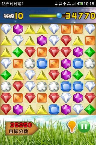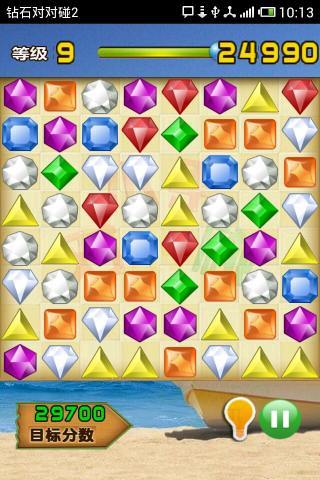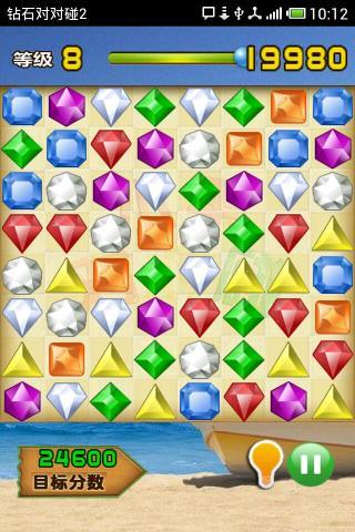钻石对对碰是一款非常简单有趣的消除游戏,但是有着自己的鲜明特色。紧迫的节奏、搞怪的音效、经典的背景,营造出一个奇妙而独特的游戏氛围,你的目标只有一个, 更多的宝石,更高的积分, 更梦幻的等级!