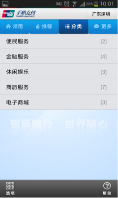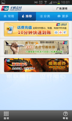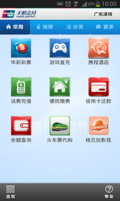 银联手机支付服务是中国银联在各商业银行的支持下,为持卡人提供的、通过手机对银行卡账户进行操作以完成支付交易的一种新型支付服务。该业务将通信运营商的无线通信网络和银行金融系统相连,使手机变成随时、随地、随身的个人金融支付终端,持卡人足不出户,便可享受安全、便捷、快速的金融支付服务。 目前,银联手机支付客户端专业版的远程金融服务已开通多项功能,包括账户余额查询、银行卡转账、信用卡还款、水电气缴费、手机充值缴费、固话宽带充值缴费、游戏点卡等数字产品的购买、火车票机票长途车票与酒店的预定和支付,以及网上商城的电子账单支付等。还有更多精彩功能正在陆续开通中