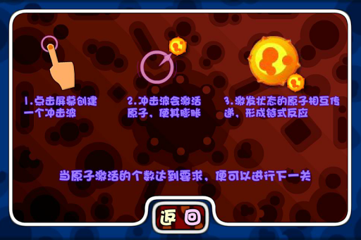 手指点击触发连锁反应~成片的原子相互爆破传递。