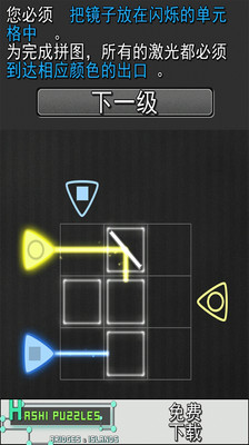 《镜面反射 》是一款经典有趣耐玩的小型解谜游戏。在这款逻辑益智游戏中,通过放置镜面来反射激光,使其到达正确的出口!仅通过逻辑方式猜测镜面的方向。不要随机移动。有 1040 关,难度不断升级,您解决得了吗?记得当您困惑时,可以无限使用免费的提示哦~