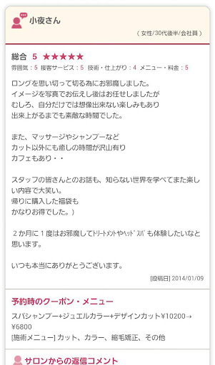 ホットペッパービューティーと連動したアプリなので最新情報をいつでも見る事が出来ます。