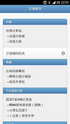 --交通資訊:詳列如何前往本校的交通資訊,並提供台鐵沙崙線時刻查詢