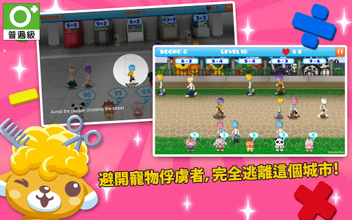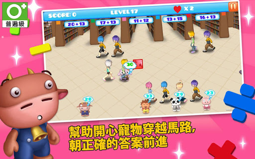 - 幫助每個開心寵物穿越馬路,朝正確的答案前進。