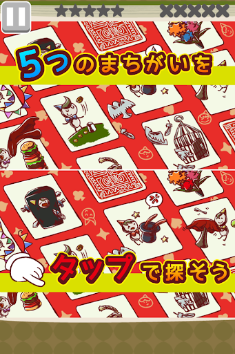 一つの絵に間違いが5つあります。間違いを探してタップしてね!