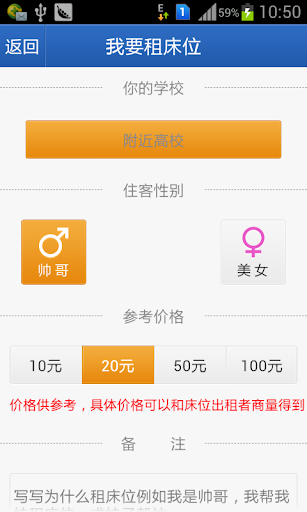 我要租床位:到大学旅游或过夜,没地方住,发布床位需求,3分钟响应,10分钟入住