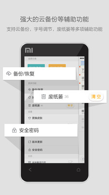 ::::闪记“云记事”震撼上线:::: 在应用市场中搜索安装“闪记云记事”立即抢鲜云版快感!闪记云版beta与单机版可同时使用,拥有语音记事、语音转文字、手写涂鸦、闪速拍照、云备份、云同步、密码锁、分类管理及保护、互动转发、一键提醒、一键记事 (自定义快捷记事方式到主屏幕) 、字号大小可调、左划置顶换色、右划删除存档、上下滑动排序、日历行程规划等完美功能,神指出品: 全免费、不作恶、不盗隐私、不偷流量、不耗内存、不插广告! 搜索安装“闪记云记事”,立即享用这一全新记事工具,享受全球绝对最棒的指划操控和创新设计!