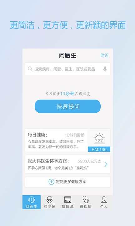 高血压怎么办?职业病怎么办?亚健康问题怎么办?感冒了怎么办?怀孕了不知道怎么育婴怎么办?“问医生”即时医患聊天功能帮您解决这些问题。