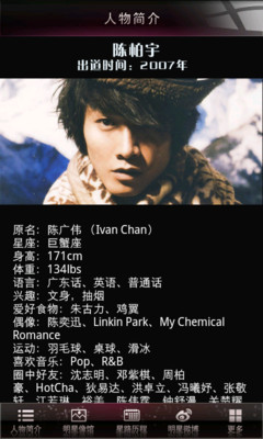陈柏宇,香港知名歌星,出道时被誉为同期新人中歌声最好的。如果有听过他的《你瞒我瞒》和《一公升眼泪》,那么很多人都会被他那强悍的唱功所深深折服。而其所拍的电影《喜爱夜蒲》也深受各男士影迷所喜爱。如果你是他的歌迷或者影迷的话,那么搞个带有他微博的APP会是个不错的选择。