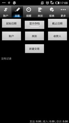 3) 记录和查询交易。查询功能可以通过账户、类别、收款人以及交易日期实现。旧交易记录可以选择存档。