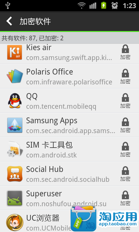 3.可查看手机安装的软件,对需要加密的软件进行加密