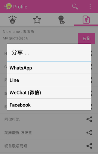 -透過 WhatsApp、Line、微信或 Facebook 快速分享金句