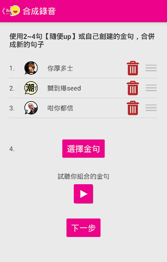 -用戶可自己錄音、再合併成金句,製成無限可能
