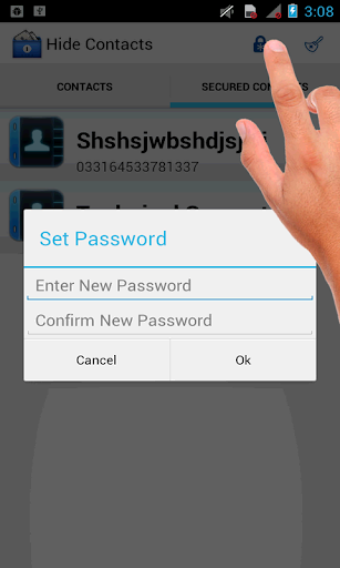 您可以選擇從聯繫人列表中的聯繫人和保護他們,一旦你獲得它會問你要設置的密碼,並且沒有密碼無法打開這些接觸。