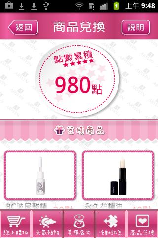 另外,我們提供「商品兌換」服務,登入【雅聞美肌保養大作戰】,每日可獲得1點,累積至一定點數可免費兌換雅聞美妝保養品,累積點數越多,兌換商品價值越高。