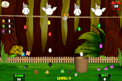 •如果你收集的粉紅色的雞蛋則反而會加重秒鐘你給定的時間,但如果你收集紅雞蛋那麼它將減去你的分數。