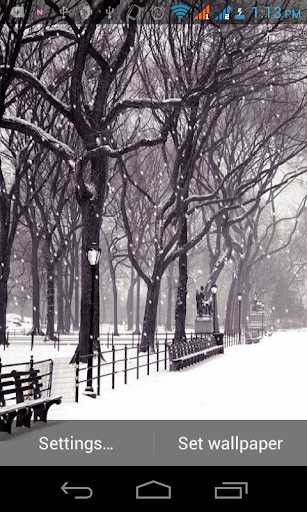 降雪动态壁纸是一个美丽的动态壁纸,雪花落在纽约市的花园。雪花下降速度的动态壁纸设置的变化,享受冬季主题的动态壁纸。