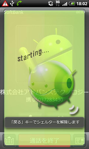 アプリを起動しシェルターをオンにしておくと、通話が開始された場合自動的にタッチパネルの操作を受け付けなくするシェルターが起動します。