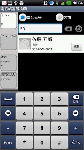 ・検索ボタンはありません。「電話番号」または「名前」が一文字入力されるごとに一致する連絡先を表示します。