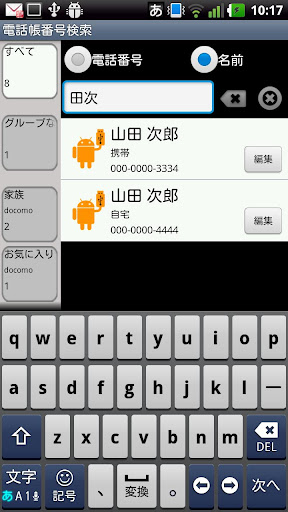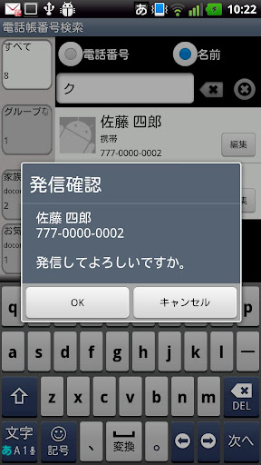また、探した連絡先に対して「電話発信」または「編集」を行うことが出来ます。
