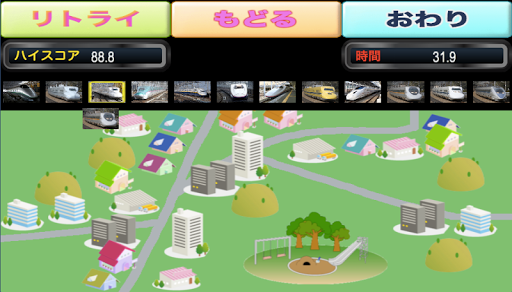 散らばった方向やタップした時の新幹線の通過音をたよりに、隠れている新幹線を見つけるゲームです。