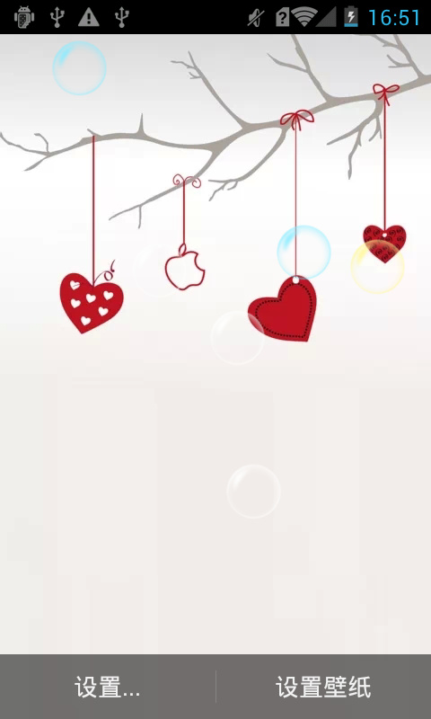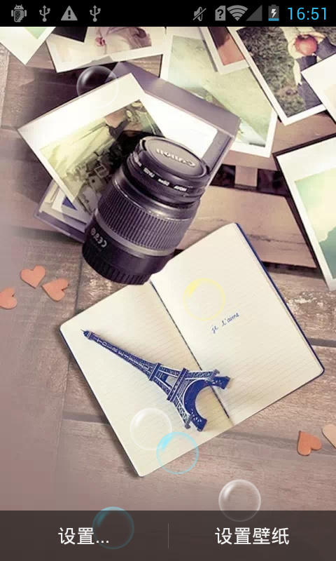 壁纸自带了梦幻泡泡,心形以及星星的特效。