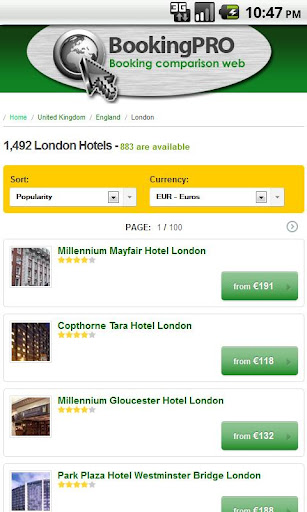 所有的力量Booking + Expedia.com, Venere.com, Lastminute.com, Hotels.com, Easytobook.com 和超過 200個網站網上最大範圍的酒店可在網上現在在手掌...它是免費的。選擇任何酒店,系統會告訴你最好的價格和哪裡的書迅速和容易。