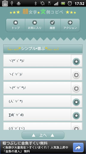 気に入った顔文字や文例を選んで、メールやTwitterアプリにコピペできる簡単アプリです!