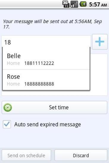 “预约消息”是一个强大的定时发送短信应用。您是否曾经忘记给您的父母、亲戚和朋友发送生日祝福? 您有没有定期关心您的女/男朋友、老婆/老公或亲人? 您有没有想长久的维持和加强您与商业伙伴的关系? 您的这些烦恼“预约消息”都可以帮您解决。 ***特性***- 定时发送短信。支持一次、每天、每周、每月和每年发送消息。- 支持群发。- 启用/关闭预约消息。- 智能匹配联系人。收件人可直接输入,并会列出智能匹配到的联系人。- 批量选择收件人。收件人也可以从列表批量多选,支持分组联系人和最近联系人。- 支持多联系人会话。已发的信息会自动添加到对应的会话。- 通知栏通知。消息过期、发送成功、发送失败时,会在通知栏通知您,同时伴随铃声和震动(可设置)。- 已发的消息会存到系统短信里面。- 设置铃声和震动。- 不支持彩信。 ***支持我们***如果您喜欢“预约消息”,请给我们评“五星”,也别忘了给亲朋好友推荐,谢谢!差评无助于我们产品的改进,我们也不能联系到您了解更多的信息。我们一直倾听用户的心声,为用户的满意而努力奋斗。开发者不能在Market上答复Fans们的评论,如果您有任何建议或者想法,请发邮件到 ow.apps@gmail.com 。
