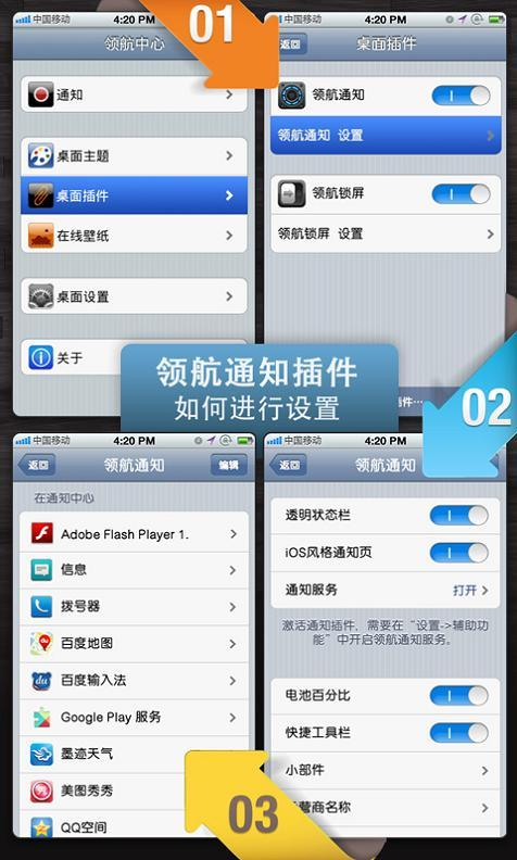 领航通知插件能有效地帮助您管理第三方应用向状态栏和通知页发送的通知,从而让您的通知页更加干净、统一,同时大大提升 Android 设备通知的显示效果。该软件的主要功能包括状态栏、通知页的效果美化,自定义运营商名称,快捷工具栏,自定义添加通知页小部件,通知中心管理,提醒方式设置等。绝对能够给您带来极佳的体验。