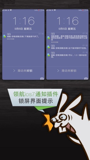 * 自定义是否将通知展示在锁屏上(需安装领航锁屏或领航锁屏 iOS7)