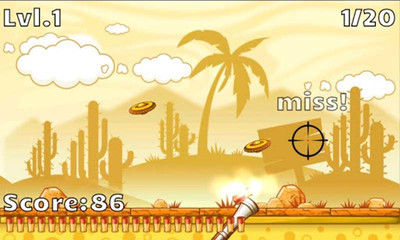 游戏有无限个等级,每个级别有20次抛靶,每次有两个飞碟从左右两边飞入,你需要用双筒猎枪将它们都击落。