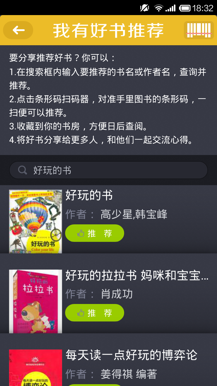 【我的书房】记录你的读书生活,提供个人图书管理。想读的、读过的、推荐的书及书单,统统记录在案!还可将你的私人藏书搬到手机中来,便于查找与管理。