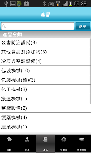 1. 廠商:利用關鍵字或展區搜尋廠商資料。