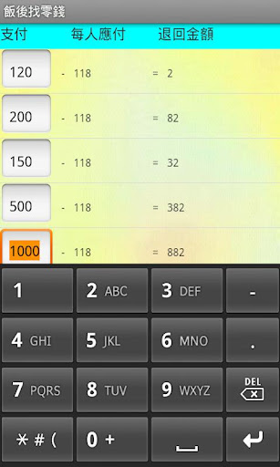 但每人支付不同的金額給你 (例如: $200, $120, $150, $500......), 你應退回多少錢給各人?