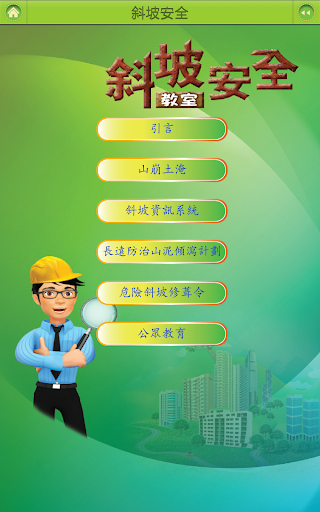「香港斜坡安全」提供一站式平台,讓用戶透過智能流動裝置方便地搜尋各項有關香港斜坡安全的資訊。安裝「香港斜坡安全」後,用戶便可隨時獲得關於斜坡安全、山泥傾瀉警告與其相關的預防措施、斜坡維修和危險斜坡修葺令的資料。