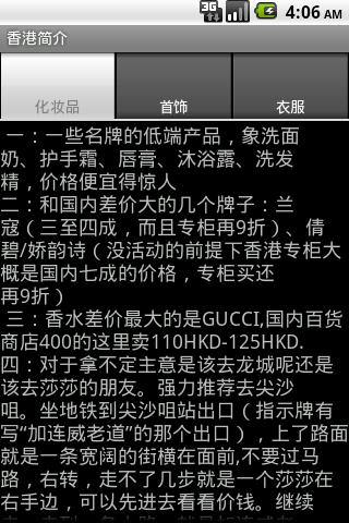 本应用介绍了香港的交通、购物、景点、旅游贴士、地图的一些常用资料,应用内的内容都来自网上。
