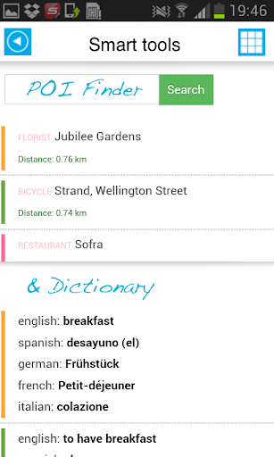 - 多语言城市交通,饮食,历史,机场和许多其他的气候信息,如表或吃事件信息(离线)