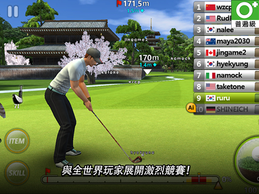 - 1:1比賽模式:可以跟全世界高爾夫選手們比賽。