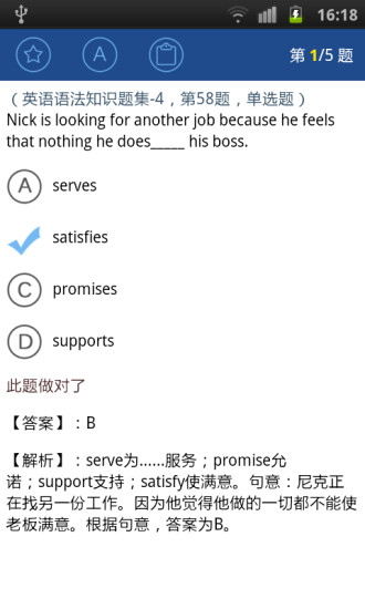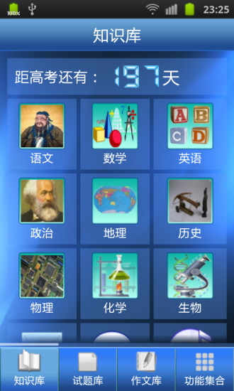 高考必备包含了高考各科知识总结、历年高考试卷、作文指导、英语听力等各类资料,这些资料相当于100本专业参考书及200张光盘的总和。不管您是高几的学生,这个软件里面都有您想要的学习资料。您可以在课间、公交车上、睡觉前拿出手机背几个知识点、看几篇作文、听听英语听力资料,既不浪费时间又能让自己的知识更为扎实。
