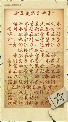 针对高血压这一常见病,以问答的方式详细地讲解了与高血压发生有关的危险因素,通过改变不良的生活方式和药物防控高血压的方法,以及高血压病情监控等方面的知识。软件以高血压为主线,融合了冠心病,血脂异常、糖尿病等相关疾病的防治知识,从饮食、运动、烟酒、减肥、心理等多个方面,向用户展示了一种全面而健康的生活方式,对于减少高血压的发生和危害、促进公众生活质量的提高有较好的指导作用。
