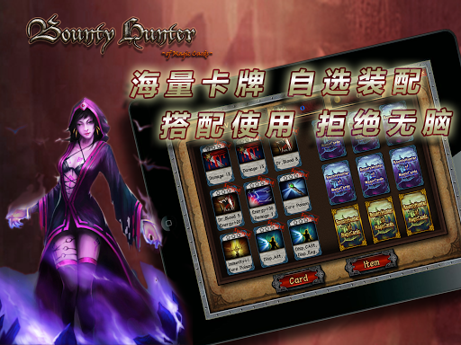 经典闯关:和怪物战斗,获得赏金,更有机会获得新的卡牌和道具。