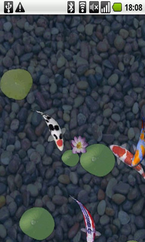 一款鲤鱼池塘动态壁纸,可以设置鱼的数量,游动的速度,鱼的类型,池塘水面也可以设置,你可以喂鱼,摸鱼等,需要2.1以上rom。