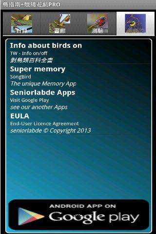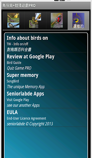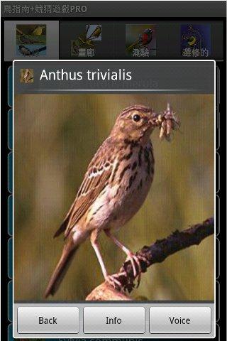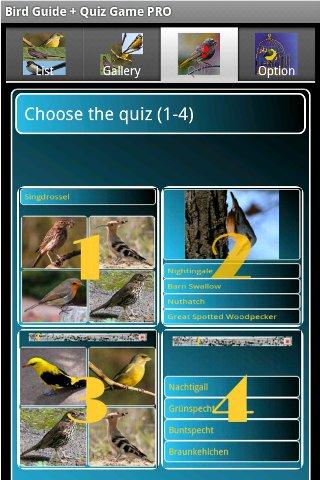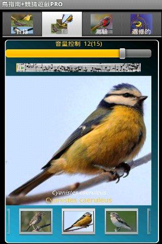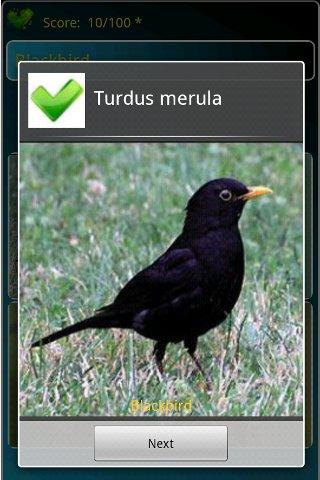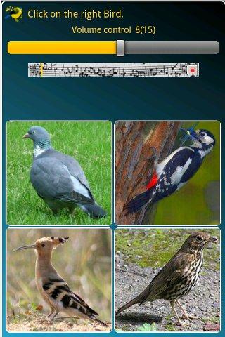 Of 38 different songbirds must be recognized in each round 10th. Are all subject to chance songbird recognized, you get 100 points, and listens to the singing birds of the last correctly choosen bird.