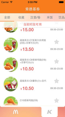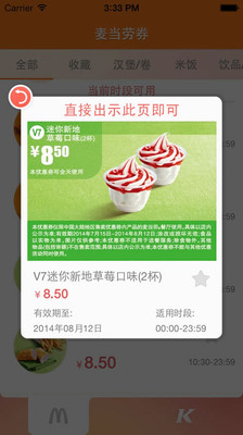 ·麦当劳、肯德基电子优惠券,出示手机即享优惠