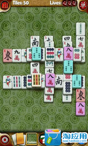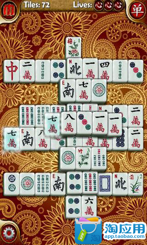 麻将连连看(Random Mahjong Pro)是一款Android平台以麻将为主题的连连看游戏,采用了重叠的立体图形界面,界面非常华丽,而玩法比较简单,要求在规定的时间内把2个相同的麻将子连接起来消除,不过连接的路线可是不能有障碍物挡住!游戏拥有3个难度,一共50个关卡,喜欢麻将和连连看的朋友玩玩,非常不错的!